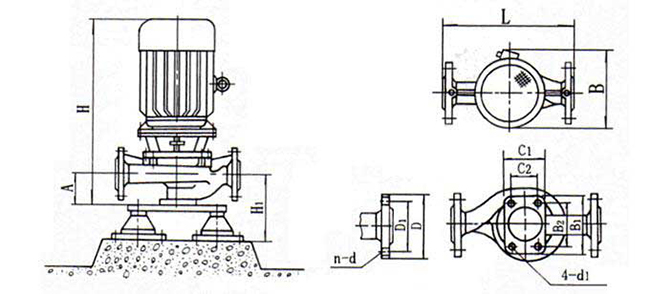 1、泵為立式結(jié)構(gòu),進出口口徑相同,且位于同一中心線上,可象閥門一樣安裝于管路之中,外形緊湊美觀,占地面積小,建筑投入低,如加上防護罩則可置于戶外使用。